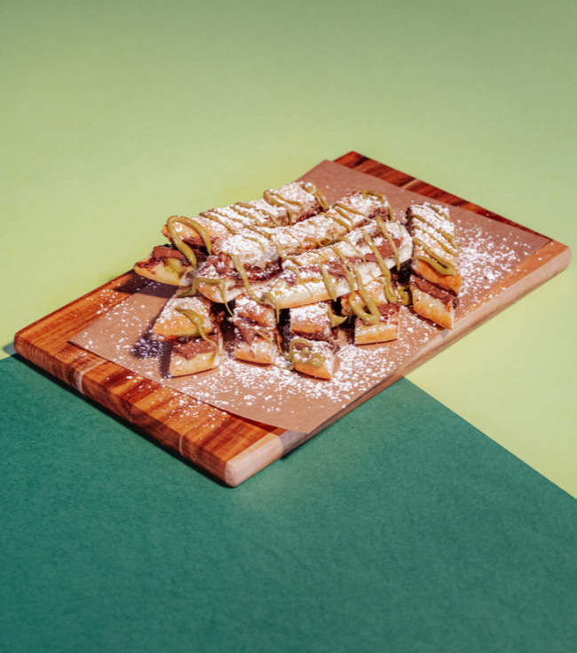 Un voyage express direction la gourmandise extrême : crème de pistache + Nutella qui se marient à la perfection. Luxe, douceur…et un sérieux risque de ne pas vouloir partager.