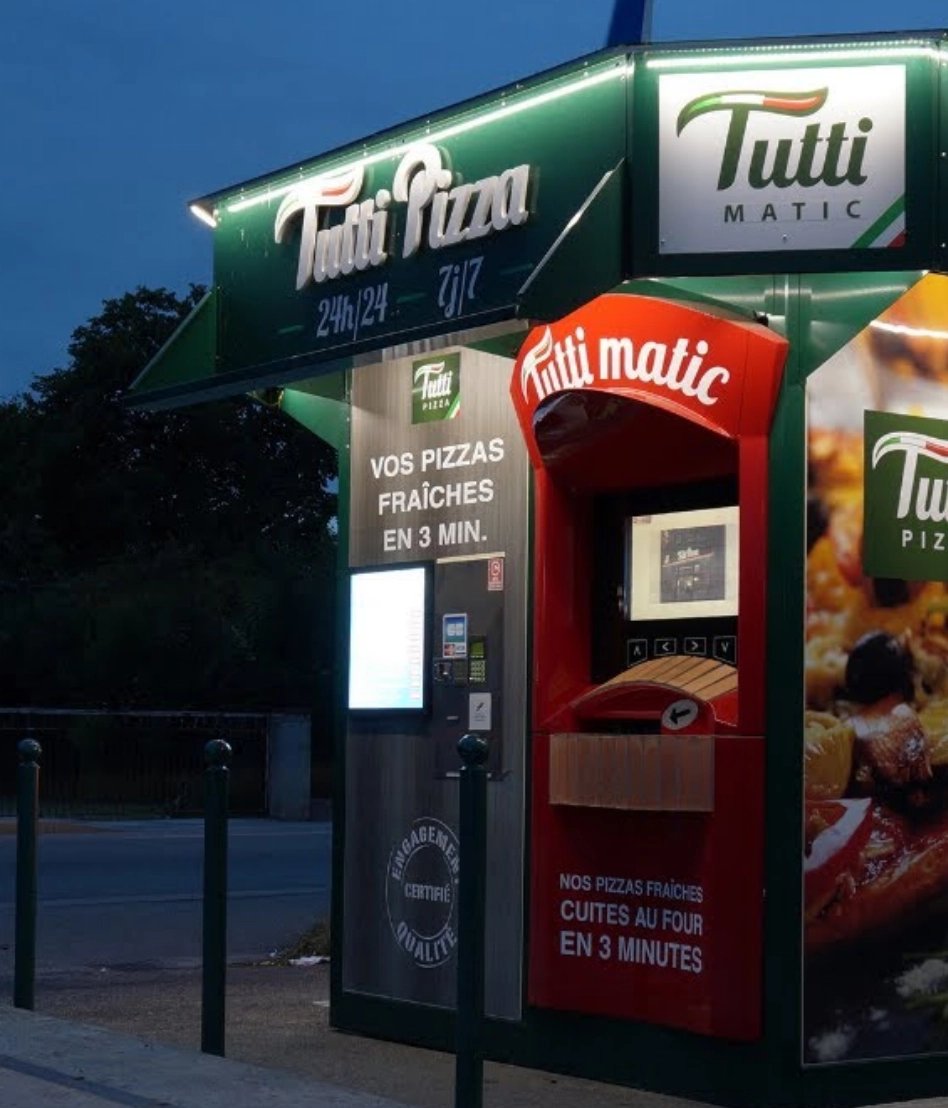 Les Tutti Matic sont des distributeurs automatiques de pizzas, ouverts 24H/24 et 7J/7.
