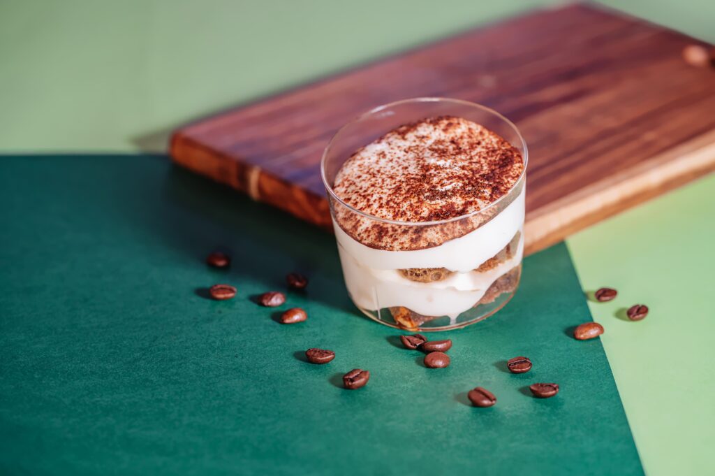 Crème mascarpone, café et cacao, boudoirs (sans alcool).