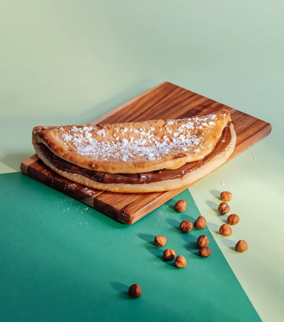 Pâte à pizza fourrée de Nutella, morceaux de bananes.
